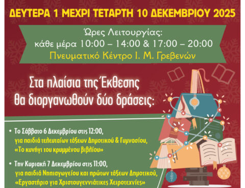 ΑΝΑΚΟΙΝΩΣΗ Tο Βιβλιοπωλείο “Αναλόγιον” της Ιεράς Μητροπόλεως Γρεβενών, όπως κάθε χρόνο έτσι και φέτος, διοργανώνει Έκθεση Παιδικού Χριστιανικού Βιβλίου στο Πνευματικό Κέντρο της Ιεράς Μητροπόλεως, από 1 μέχρι 10 Δεκεμβρίου…