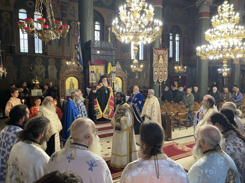 Ανήμερα της εορτής, ο Σεβασμιώτατος Μητροπολίτης μας προεξήρχε της Αρχιερατικής Θείας Λειτουργίας στον Μητροπολιτικό Ναό, συλλειτουργούντων των ιερέων των δύο ενοριών της πόλεώς μας και τη συμμετοχή πλήθους λαού και των τοπικών αρχόντων.