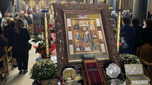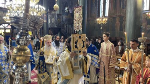 Κατά τον Μέγα Πανηγυρικό Εσπερινό, τέθηκαν προς προσκύνηση και αγιασμό του λαού τίμια λείψανα Αγίων με ιδιαίτερη σημασία για την τοπική Εκκλησία και το Έθνος μας: