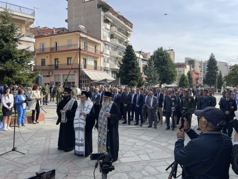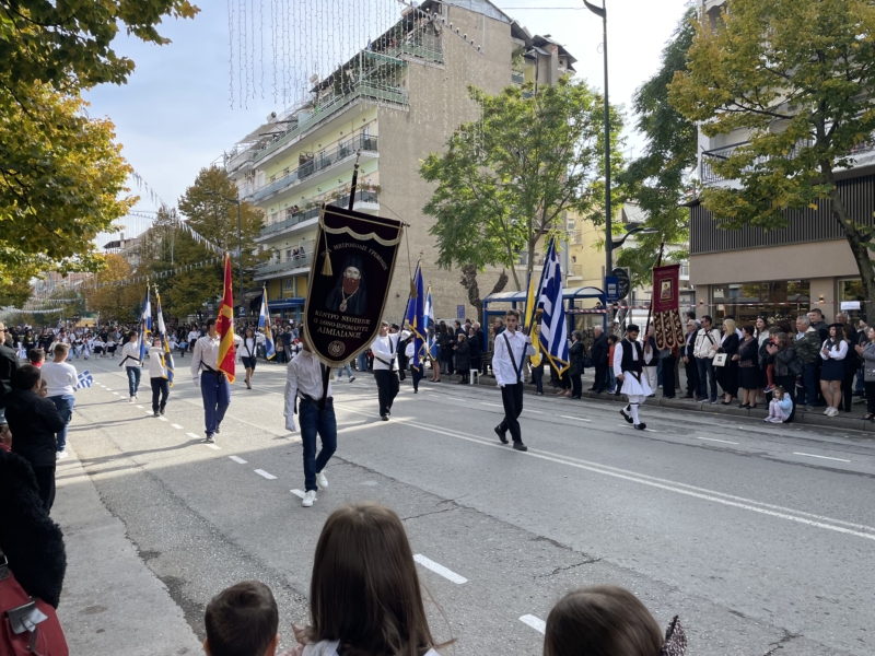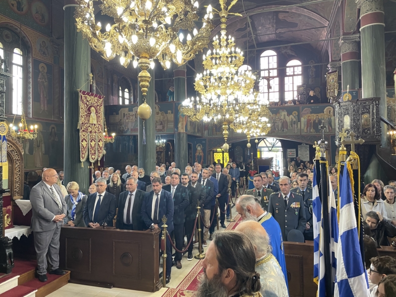 Μετά το πέρας της Θείας Λειτουργίας, τελέστηκε επιμνημόσυνη δέηση υπέρ αναπαύσεως των υπέρ Πίστεως και Πατρίδος αγωνισθέντων, ενώ ακολούθως ο Σεβασμιώτατος παρακολούθησε τη λαμπρή μαθητική παρέλαση στο κέντρο της πόλεως. Ιδιαίτερη εντύπωση και συγκίνηση προκάλεσε η συμμετοχή των Κατηχητικών Σχολείων της Ιεράς Μητροπόλεως, του Κέντρου Νεότητας, καθώς και του νεοσύστατου Κατηχητικού της Ενορίας Αγίου Γεωργίου Βαροσίου. Με σεμνότητα, πίστη και ελληνικό φρόνημα, τα παιδιά παρέλασαν κρατώντας ψηλά την ελληνική σημαία, μαρτυρώντας την αδιάρρηκτη ενότητα Πίστης και Πατρίδας, στέλνοντας μήνυμα ελπίδας και συνέχειας. Με ευγνωμοσύνη προς τους αγίους προστάτες μας και με ευθύνη για τη διατήρηση της ιστορικής μνήμης.