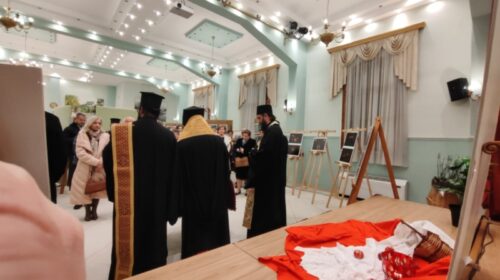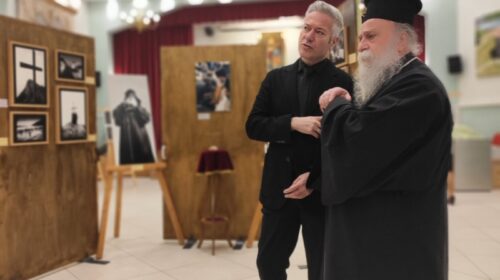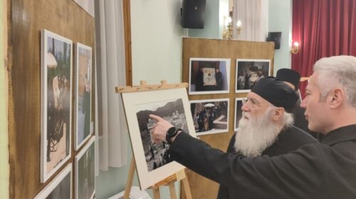 Τον αγιασμό της έναρξης της έκθεσης τέλεσε ο Σεβασμιώτατος Ποιμενάρχης μας, πλαισιούμενος από τον ομιλητή του Κατανυκτικού Εσπερινού, Γέροντας Νεκτάριος Μουλατσιώτης, καθώς και τον Διευθυντή της Αγιορειτική Εστία, κ. Αναστάσιο Ντούρο.