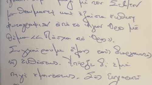 Στον σύντομο αλλά ουσιαστικό χαιρετισμό του, ο Σεβασμιώτατος τόνισε χαρακτηριστικά ότι «οφείλουμε και εμείς να εξέλθουμε από το σκοτάδι της απελπισίας και να ζήσουμε στο φως της Αναστάσεως, ώστε η ζωή μας να είναι χαρούμενη, όπως οι χαρμόσυνες και αναστάσιμες λιτανείες του Αγίου Όρους».