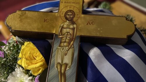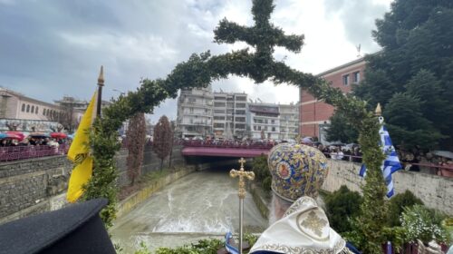 Στη συνέχεια, ο Ποιμενάρχης μας μετέβη στον ποταμό Γρεβενίτη, όπου τελέσθηκε η καθιερωμένη Ακολουθία του Αγιασμού των Υδάτων και πραγματοποιήθηκε η ρίψη του Τιμίου Σταυρού, μέσα σε κλίμα συγκίνησης και πνευματικής χαράς.