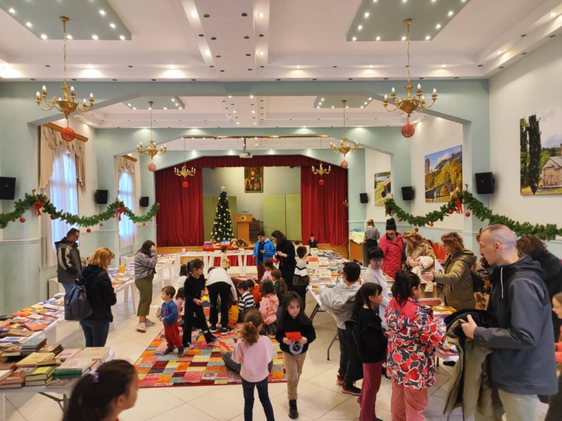 Με την φωταγώγηση της Φάτνης στην αυλή του Επισκοπείου της Ι.Μ. Γρεβενών και τις μελωδίες από τα παιδιά της Παιδικής Χορωδίας έκλεισε και η αυλαία της φετινής Έκθεσης Παιδικού Χριστιανικού Βιβλίου που οργάνωσε το Βιβλιοπωλείο Αναλόγιο. Πολλοί πέρασαν να φυλλομετρήσουν τους τίτλους των βιβλίων. Μα πιότερο χαρήκανε τα παιδιά του νηπιαγωγείου που ήρθαν για να βρούνε “τον Θησαυρό των Χριστουγέννων”, του Δημοτικού και του Γυμνασίου & Λυκείου που απόλαυσαν το “κυνήγι του Βιβλίου”, με το οποίο ήρθαν πιο κοντά στον κόσμο των εκδόσεων.